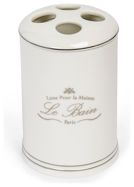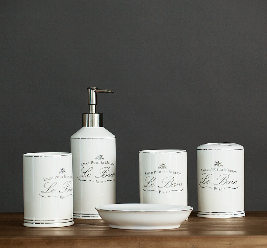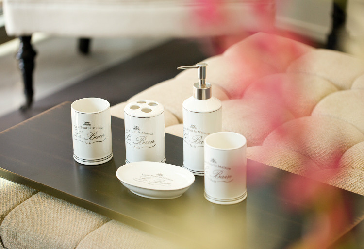 Набор аксессуаров Le Bain — это набор 5 предметов: диспенсер, мыльница, стакан для зубных щеток и два стакана. Аксессуары Le Bain это роскошные высококлассные керамические предметы, которые придадут вашей ванной комнате лоска, элегантности и французского шика.