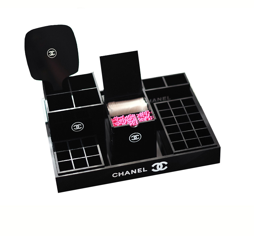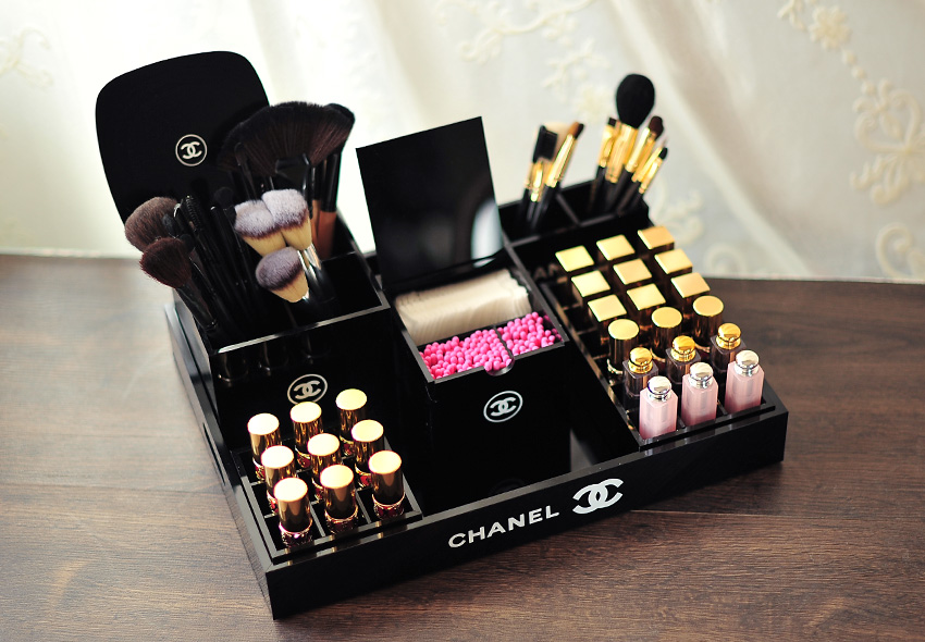 Безупречные, стильные и утонченные органайзеры и поднос. Такие превосходные подставки для кистей и косметики — настоящая палочка-выручалочка для любой современной лэди. Теперь кисти, косметику можно быстро и легко найти, а это особенно важно, когда торопишься на встречу. Корпус сделан из черного глянцевого акрила и украшен фирменным знаком легендарной коко. Органайзеры словно созданы для вашего элегантного туалетного столика! Станет отличным подарком для очаровательной модницы.
