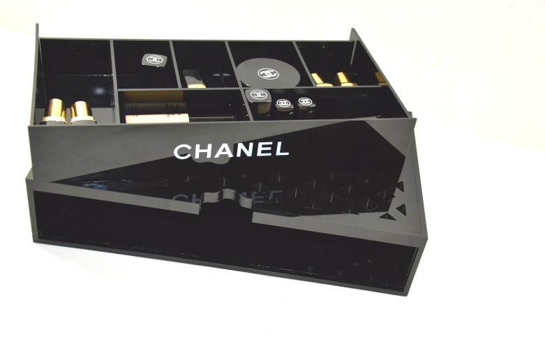 Безупречный, стильный и утонченный органайзер . Такой превосходный органайзер для кистей и косметики — настоящая палочка-выручалочка для любой современной лэди. Теперь кисти, косметику можно быстро и легко найти, а это особенно важно, когда торопишься на встречу. Корпус сделан из черного глянцевого акрила и украшен фирменным знаком легендарной коко. Органайзер словно создан для вашего элегантного туалетного столика! Станет отличным подарком для очаровательной модницы.