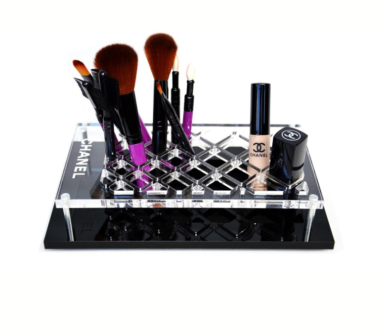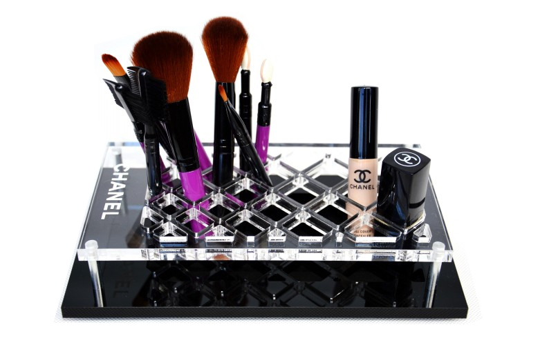 Безупречный, стильный и утонченный органайзер . Такая превосходная подставка для кистей и косметики — настоящая палочка-выручалочка для любой современной лэди. Теперь кисти, косметику можно быстро и легко найти, а это особенно важно, когда торопишься на встречу. Корпус сделан из черного глянцевого акрила и украшен фирменным знаком легендарной коко. Органайзер словно создан для вашего элегантного туалетного столика! Станет отличным подарком для очаровательной модницы.