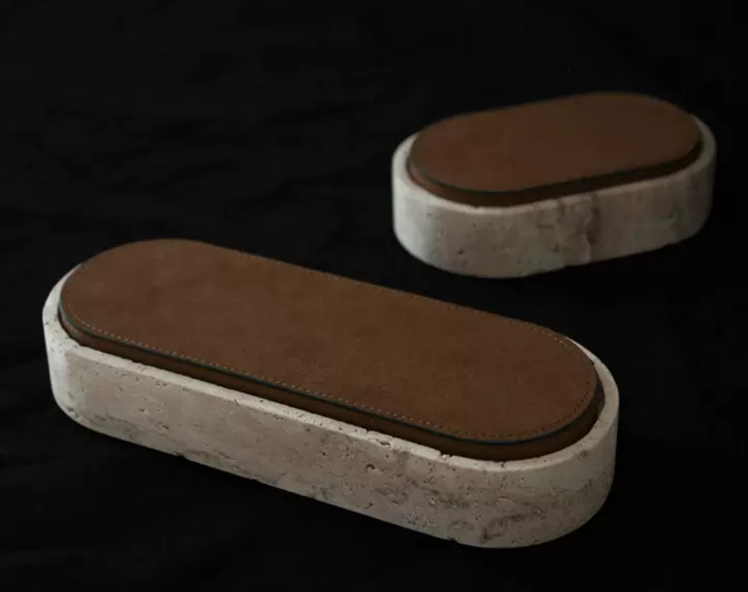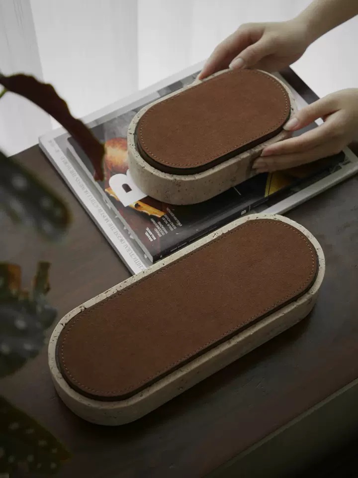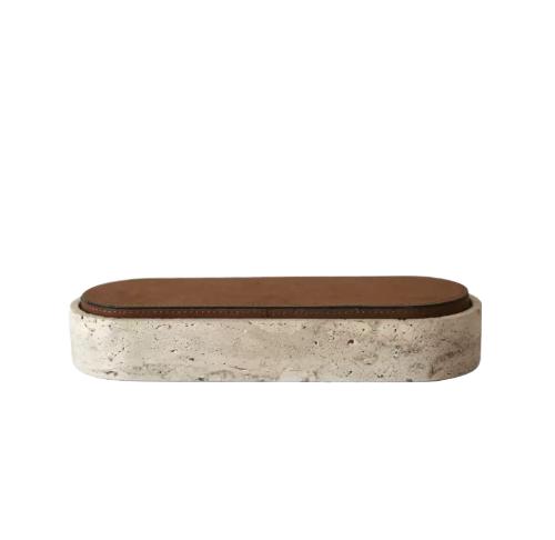 Крышка шкатулки, обтянутая рыжей кожей, придает ей некую теплоту и ощущение органичности. Кожа также добавляет шкатулке некоторую текстуру и дополнительный элемент роскоши.