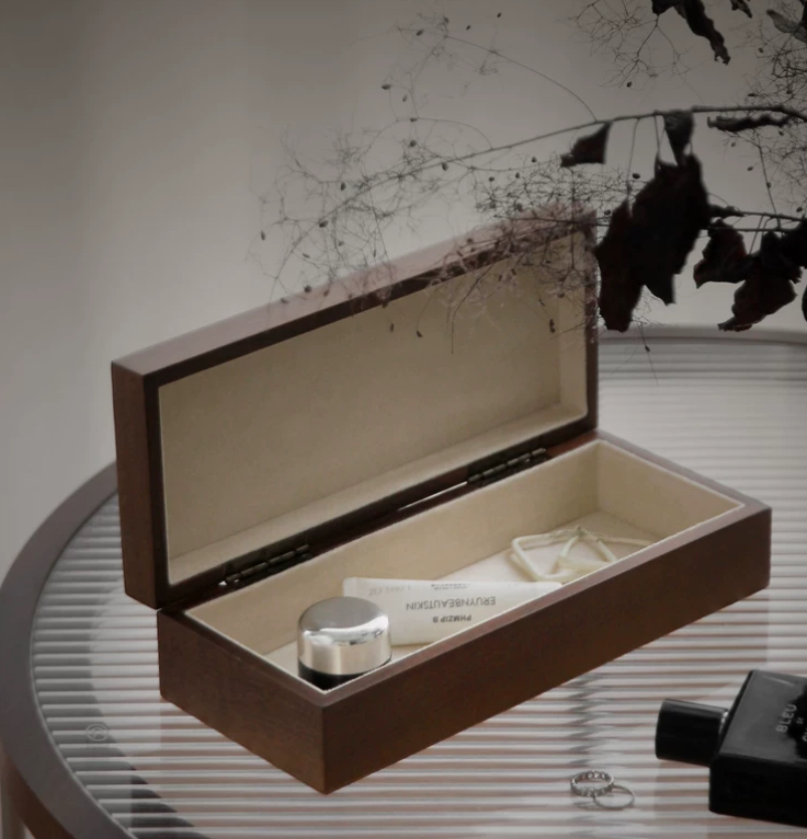 Изготовленная из высококачественного дерева, эта шкатулка обладает прочной конструкцией и надежностью, что обеспечивает ее долговечность и стойкость к повреждениям. Прямоугольная форма шкатулки не только придает ей элегантный и классический вид, но и делает ее удобной в использовании.