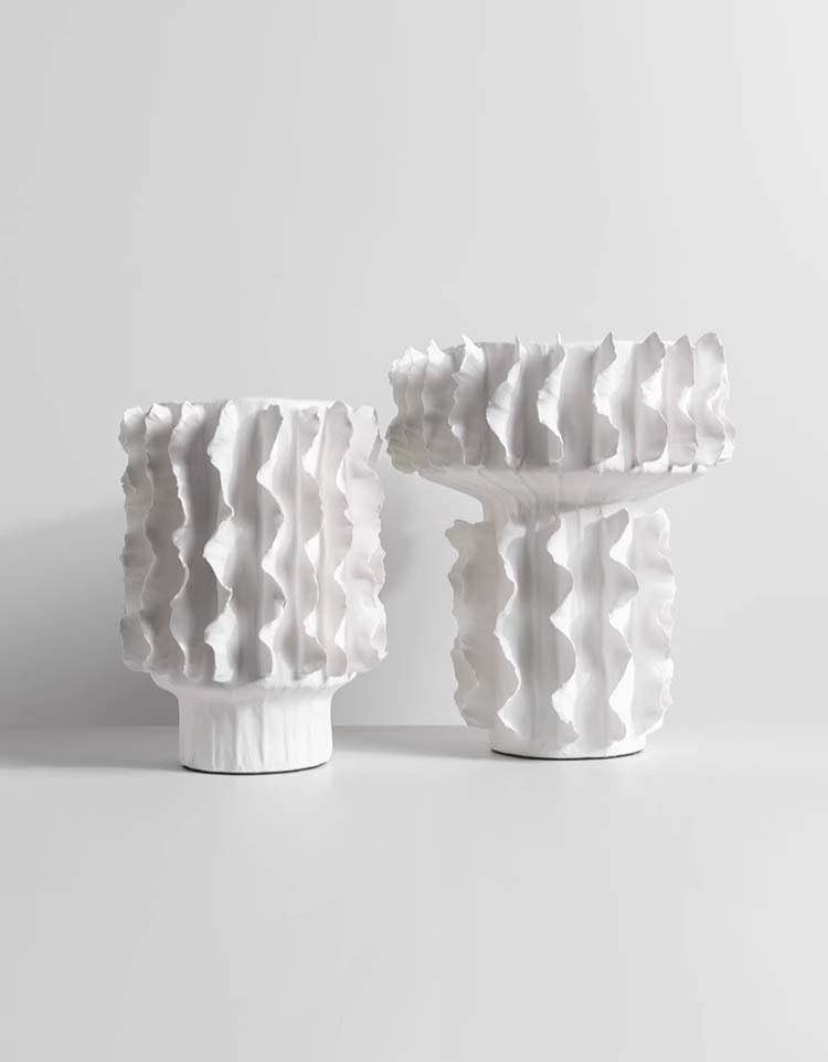 Белая Ваза Actinia- это Чрезвычайно нетривиальный текстурный дизайн, который напоминает традиционную вазу в форме урны, при этом украшенную изогнутыми деталями уникальной формы. Художественная ваза с орнаментальным силуэтом изготовлена вручную из керамики и украшена керамическими элементами, добавляющими текстурный элемент. Идеальное дополнение к интерьеру, такая ваза прекрасно сама по себе или в дуэте с живыми цветами!