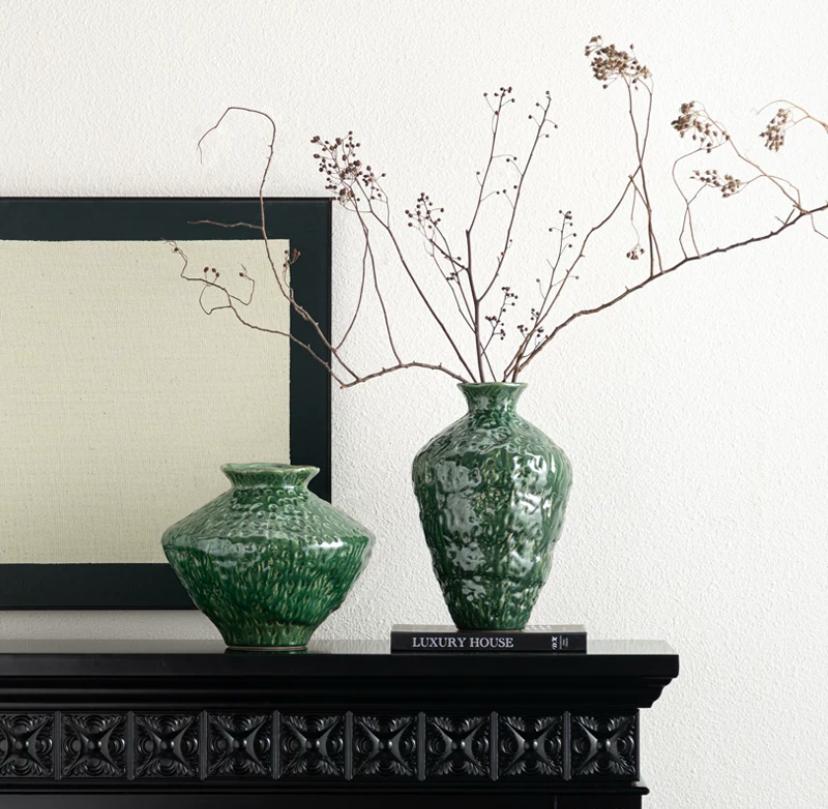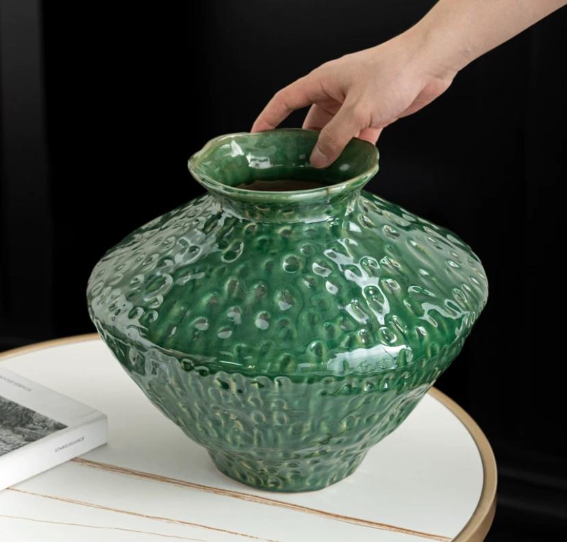 Поверхность вазы покрыта гладкой, блестящей глазурью, словно драгоценным камнем. Зеленый цвет, глубокий и насыщенный, переливается разными оттенками, напоминая о весеннем лесе, изумрудной траве и прохладной воде горного озера. Под определенным углом глазурь играет солнечными зайчиками, словно в ней заключены крошечные искры жизни. Она не только украшает вазу, но и защищает ее от внешних воздействий, сохраняя ее красоту на долгие годы.