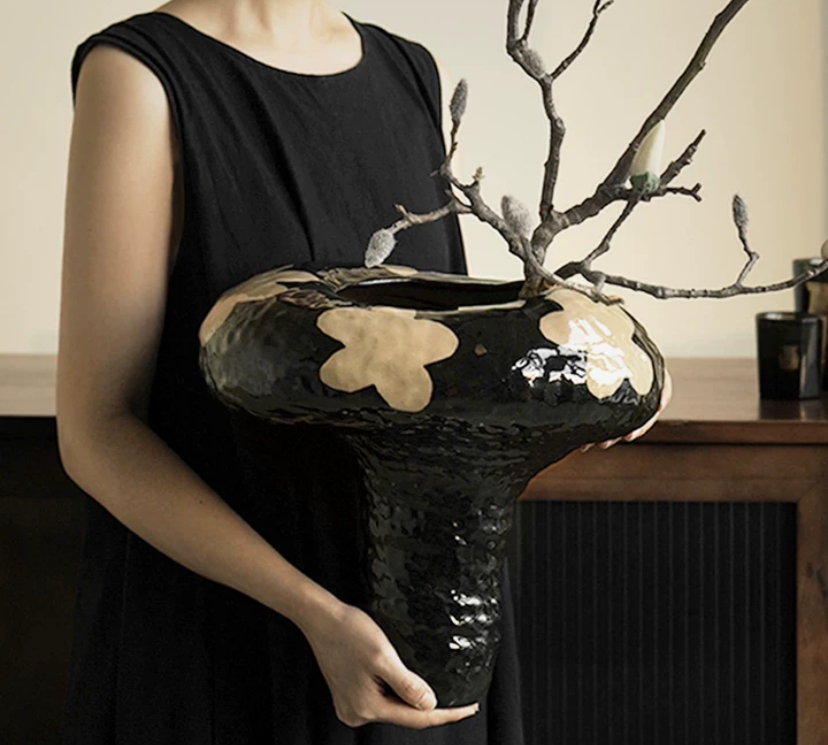 На первый взгляд ваза производит эффект загадочного и стильного произведения искусства. Ее глубокий, насыщенно черный цвет создает впечатление тайны и бесконечности, как ночное небо без звезд. Этот цвет усилен глянцевой глазурью, которая добавляет поверхности вазы невероятный блеск и глубину. Глянцевая поверхность словно притягивает свет, и кажется, что по вазе пробегают отблески, создавая игру светотени.
