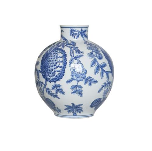 Основа вазы – идеально выверенная, округлая форма, напоминающая о полноте жизни и гармонии вселенной. Белоснежный фон, словно чистый холст, служит идеальным обрамлением для живописного узора, нанесенного с любовью и вниманием к каждой детали.