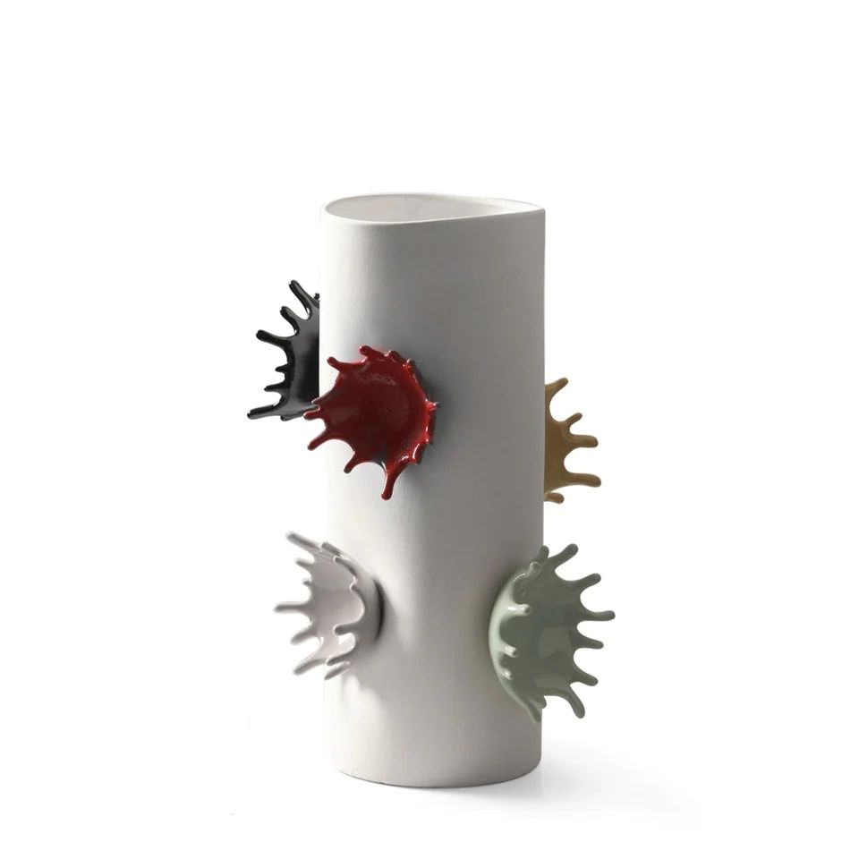 Ваза имеет стильную и изящную форму, которая подчеркивает ее красоту. Ее белый цвет создает ощущение чистоты и свежести, а украшения в виде брызг воды добавляют вазе игривости и динамики. Она станет прекрасным акцентом в любом помещении, будь то гостиная, спальня или офис.