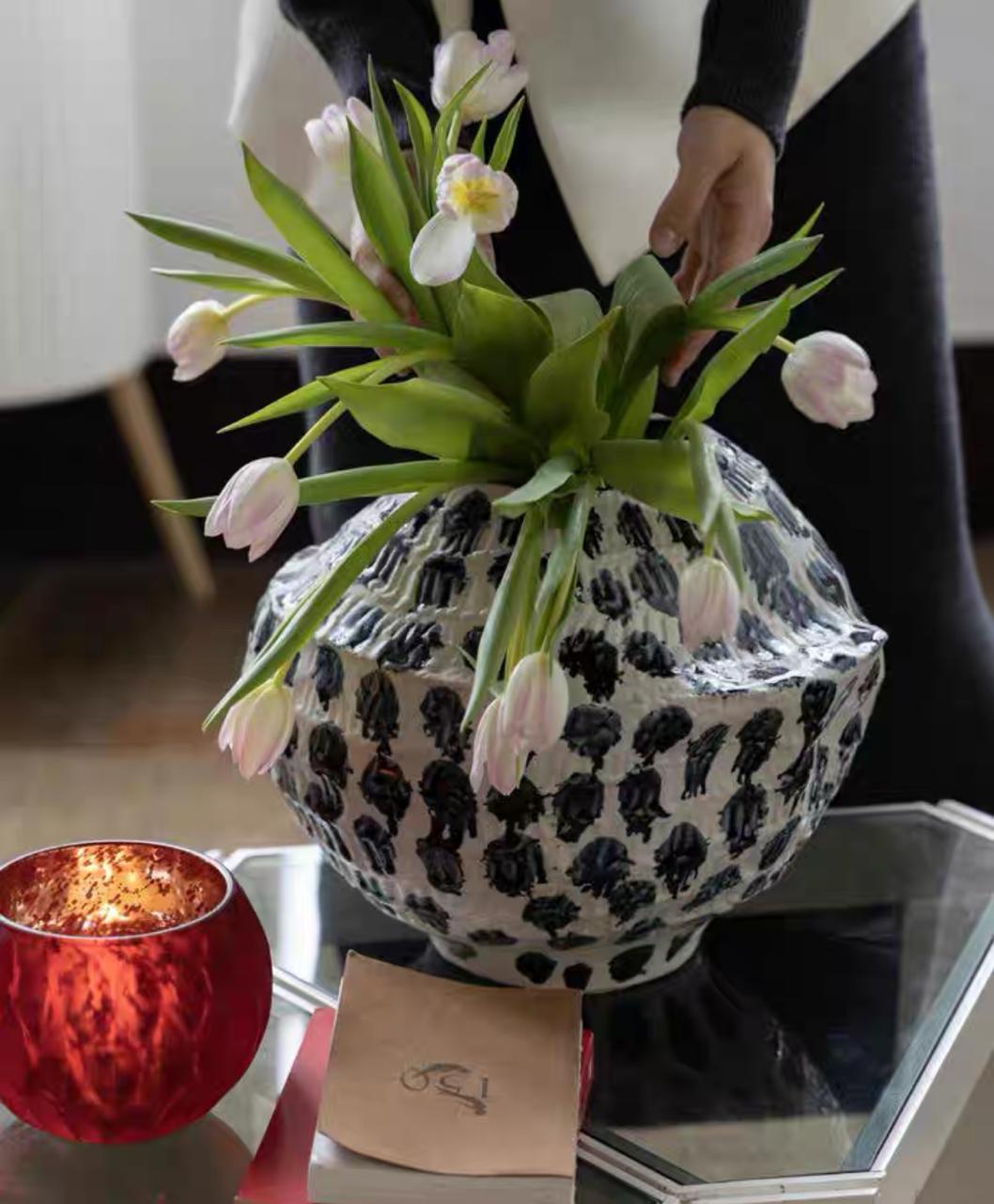 Представьте себе керамическую вазу, словно рожденную из хаоса и стремящуюся к гармонии. Это не просто сосуд для цветов, а выразительное произведение искусства, которое притягивает взгляд своей уникальностью и неординарностью. Она станет ярким акцентом в интерьере, добавляя ему нотку богемного шика и авангардного стиля.