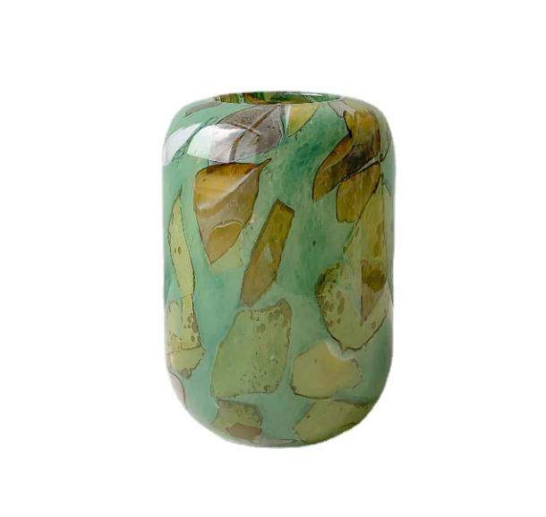 Ее пленительный цвет бирюзы, с нежными вкраплениями деталей янтарного цвета, придают ей сказочную и аристократичную ауру. Разнообразные оттенки и переливы стекла, подчеркивающие ее форму, создают впечатление живого огня, который наполняет комнату теплотой и очарованием.