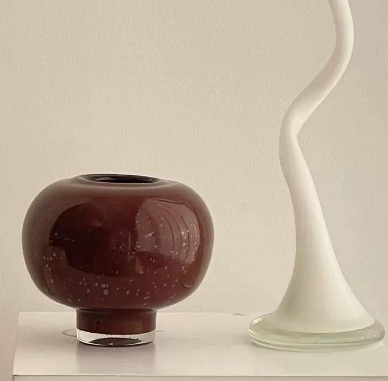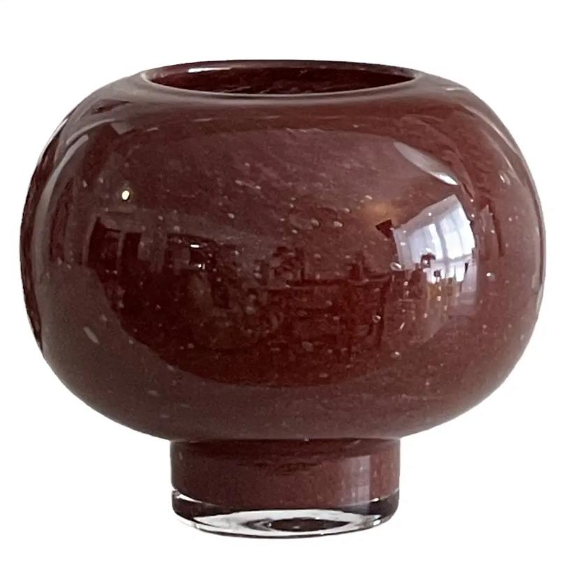 Комбинация вишневого цвета с воздушными пузырьками и неровностями делает данную вазу еще более привлекательной и прекрасно сочетается с любым стилем декора. Она станет ярким акцентом в любом помещении, будь то гостиная, спальня или столовая.