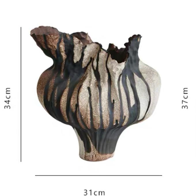Цвет вазы – глубокий, насыщенный, напоминающий свежесваренный кофе с молоком. Он обволакивает теплом и уютом, создавая атмосферу спокойствия и гармонии. Но самое удивительное – это верхняя часть вазы, словно политая густым, тягучим шоколадом. Этот эффект достигается благодаря особому глазурованию, имитирующему аппетитные подтеки шоколада, застывшие на керамической поверхности.