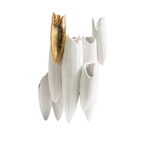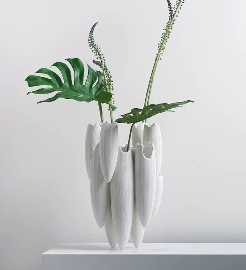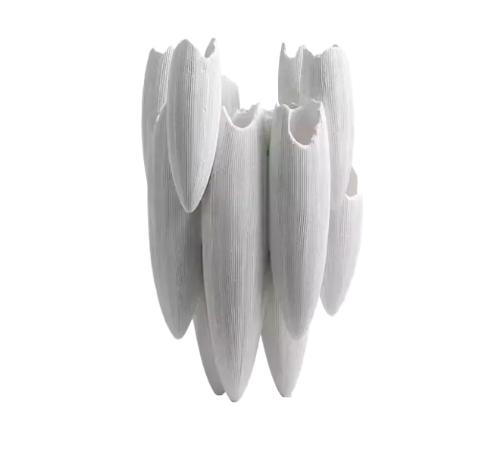 Всего в этой космической вазе представлено множество абстрактных белоснежных вазочек, каждая из которых уникальна и восхищает своей оригинальностью. Легко представить, как играет свет на их белоснежной поверхности, создавая интересные отражения и переливы.