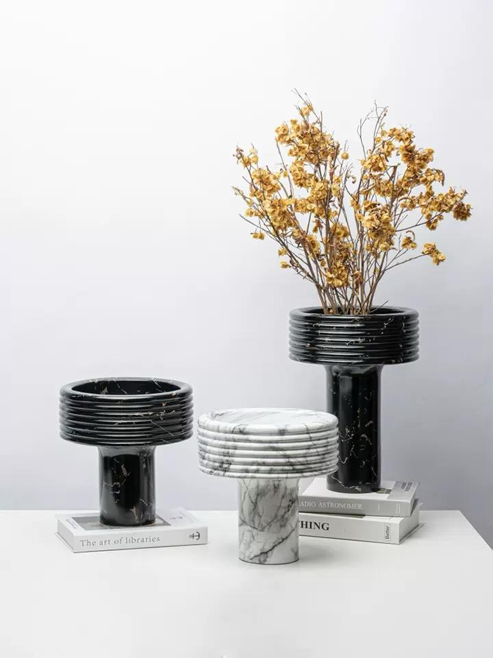 Черный мрамор, воплощенный в этой вазе, наделяет ее особой эстетикой. С его глубокими оттенками и таинственным блеском ваза становится настоящей жемчужиной в интерьере, погружая его в атмосферу роскоши и утонченности. Нежными лучами света и отражениями создаются игры теней и света, которые добавляют эффектности и динамики.