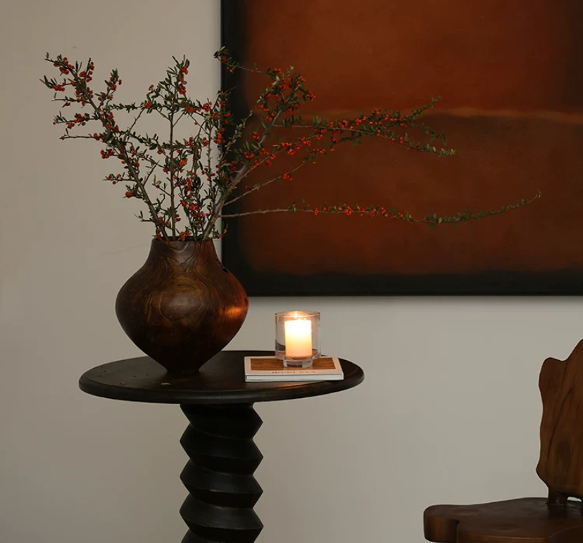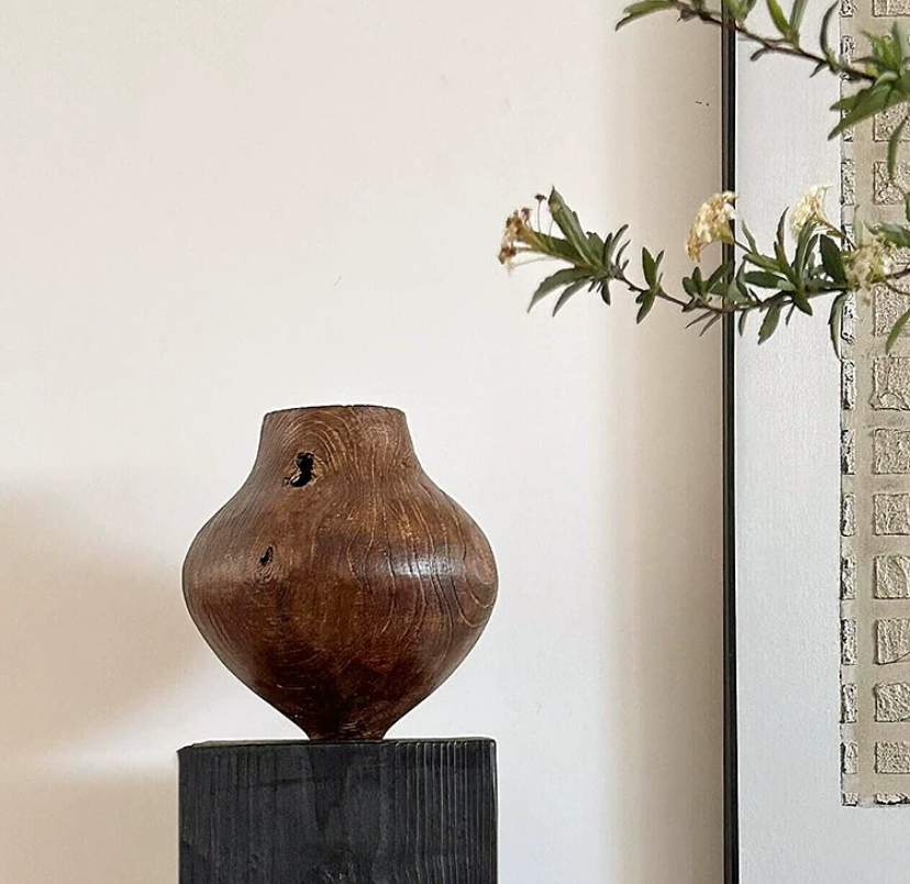 Ваза Sacha, в центре комнаты, словно произведение искусства, возвышается ваза, созданная из древесины лиственницы. Её округлые формы притягивают взгляд благодаря своей естественной гармонии и плавности линий. Каждое изгибание, каждое утолщение и сужение создают впечатление, будто ваза сформировалась не в руках мастера, а по воле самой природы.