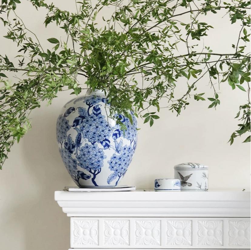 По всей поверхности этой вазы, мастером вручную нанесен рисунок флоры, создавая невероятное впечатление ланцетных листьев, цветущих цветов и причудливых ветвей. Изображения могут быть разнообразными: розы, пионы, лотосы или другие известные восточные цветы, что привносит нотку гармонии и естественной красоты в интерьер.