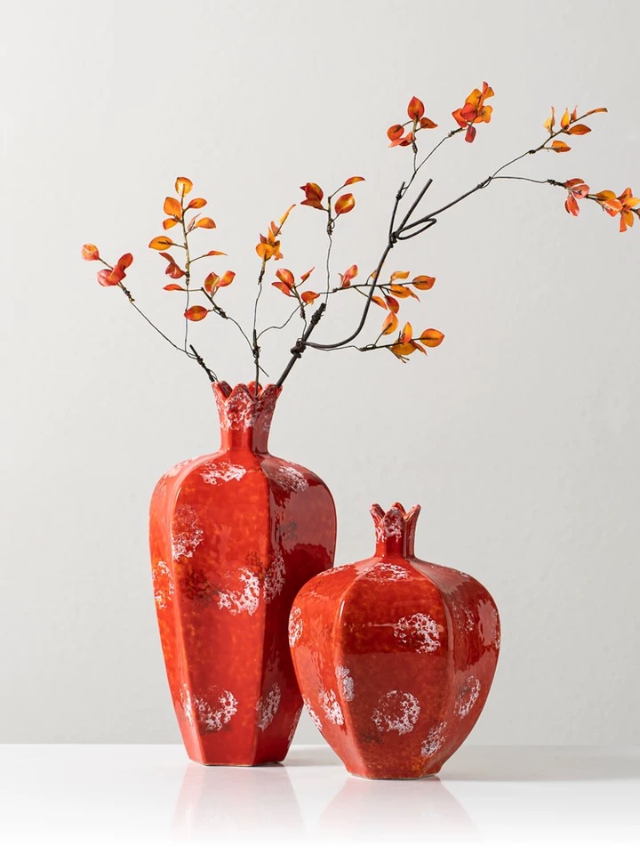 Ваза Saudi — красивая алая ваза из керамики в форме граната является истинным произведением искусства. Её выразительная форма напоминает своего рода сокровище. Сверху вазу покрывает глянцевая глазурь, которая создаёт уникальный блеск, подчеркивая изящество и роскошь данного предмета.