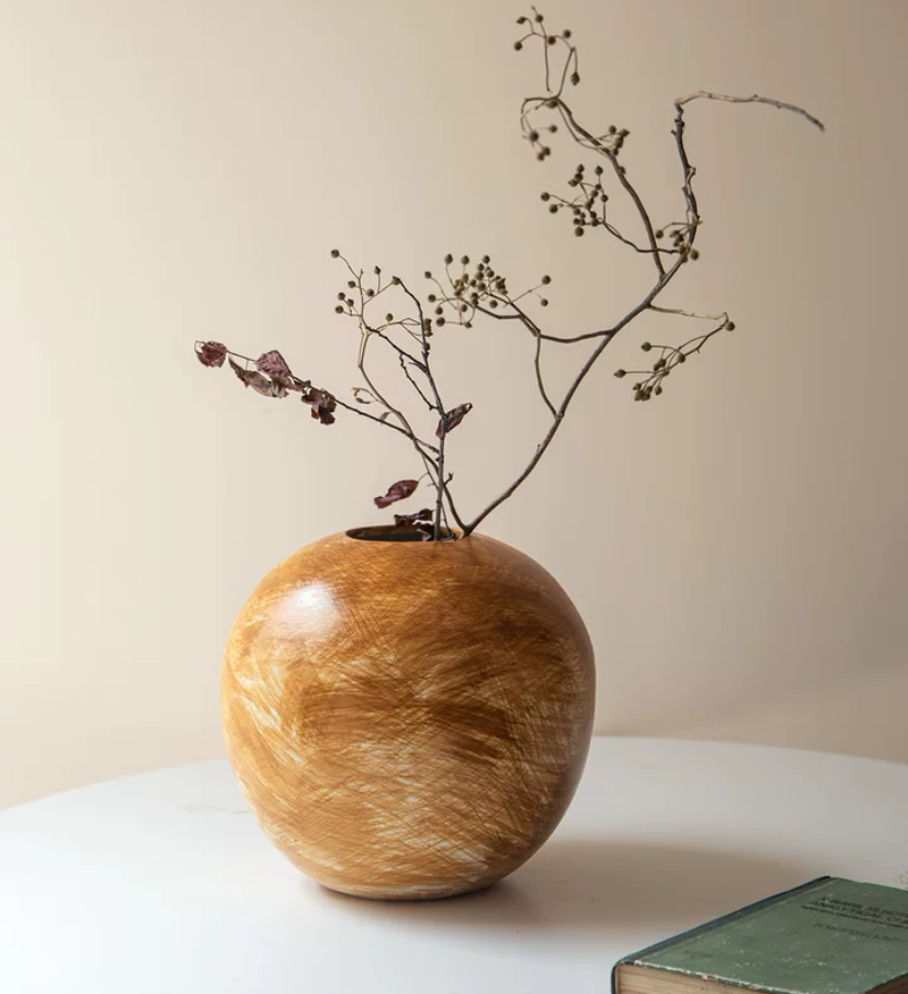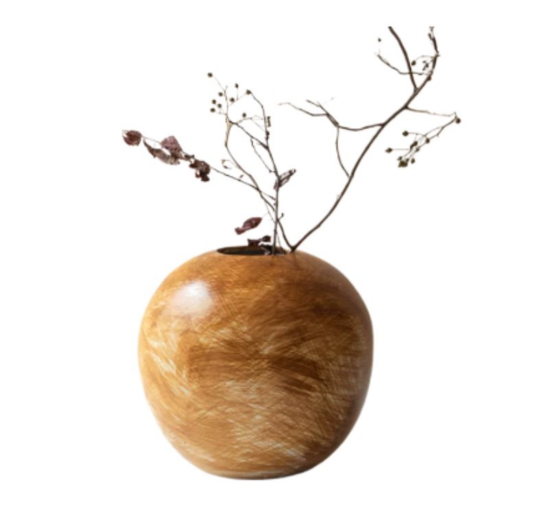 Ваза Umber — керамическое изделие, имеющее круглую форму. Ее поверхность окрашена мазками янтарного цвета, создавая впечатление теплоты и уюта. Этот оттенок придает вазе элегантный и изысканный вид. Благодаря своей форме и цвету, она великолепно впишется в любой интерьер, создавая гармоничную атмосферу.