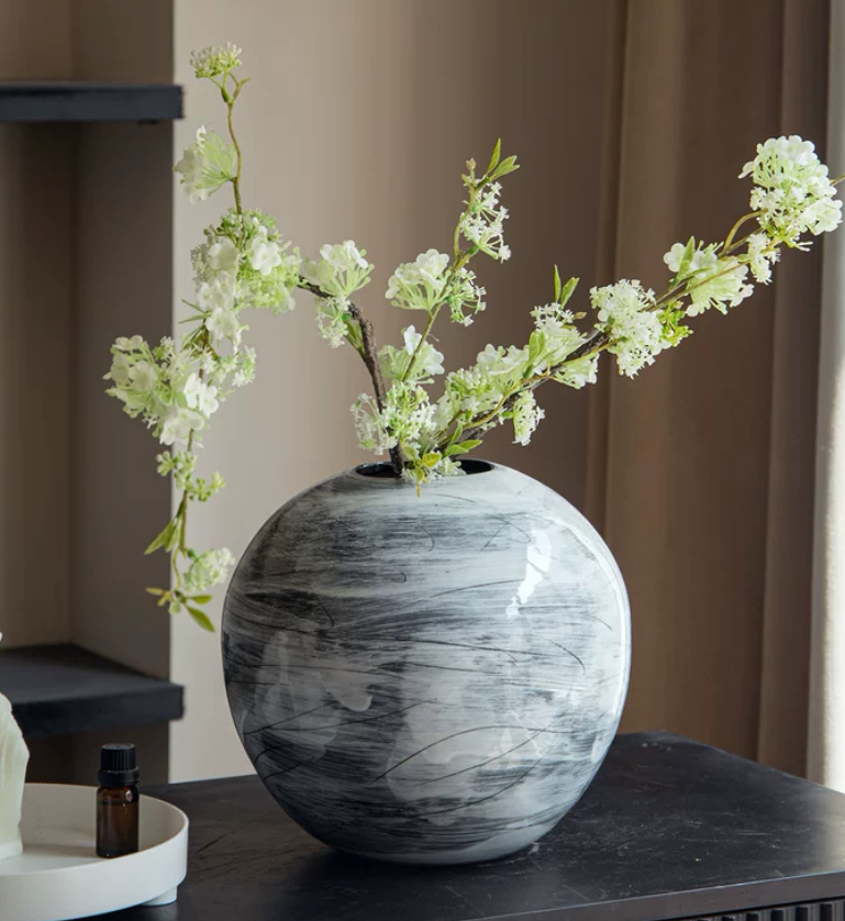Если желаете разнообразить свое пространство, к этой вазе можно приобрести еще такую же вазу серого цвета. Дополнение в виде второй вазы добавит асимметрию и интерес в композицию, создавая игру цветов и оттенков. Серый цвет придаст некую элегантность и конкретность общему облику.
