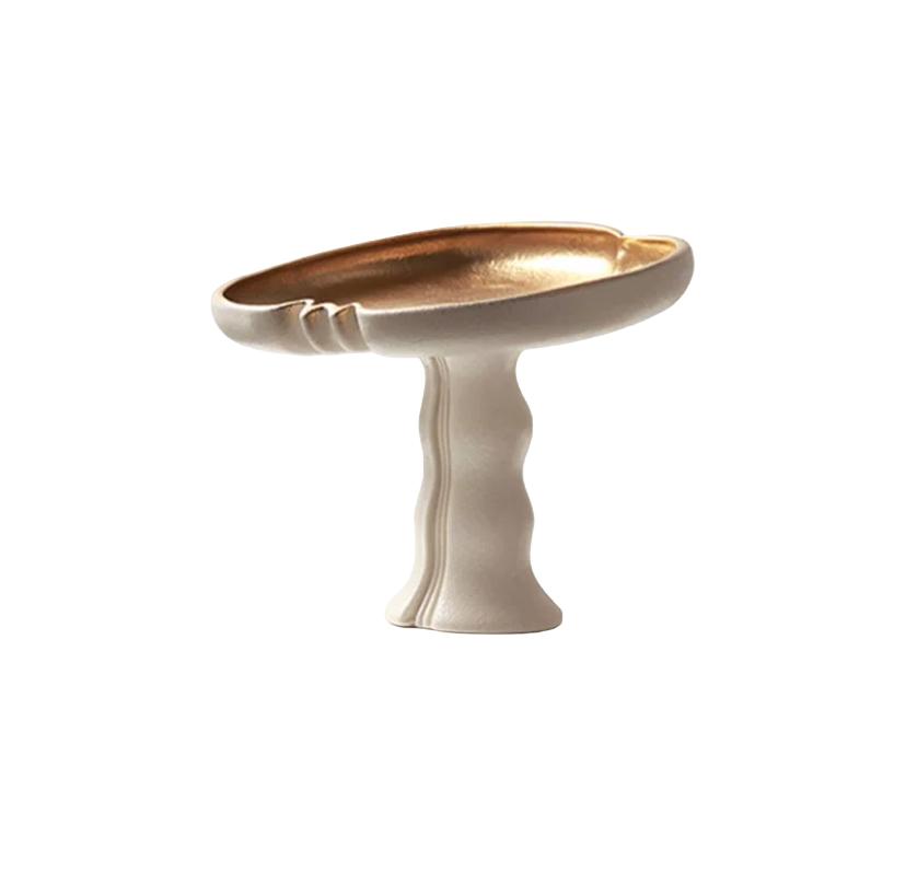 Такая керамическая дизайнерская ваза кремового цвета, в форме гриба, на ножке со шляпкой выкрашенной золотистым акрилом — это элегантное и уникальное произведение, способное украсить любой интерьер и подчеркнуть вкус его владельца.