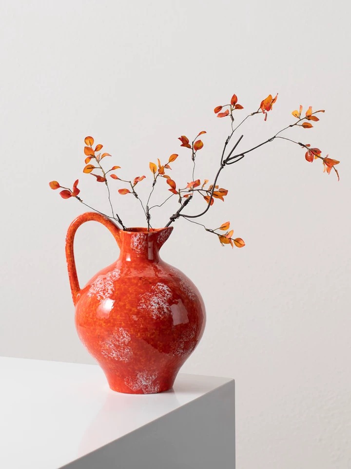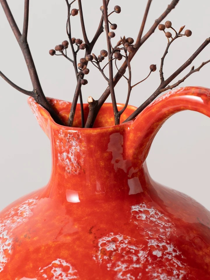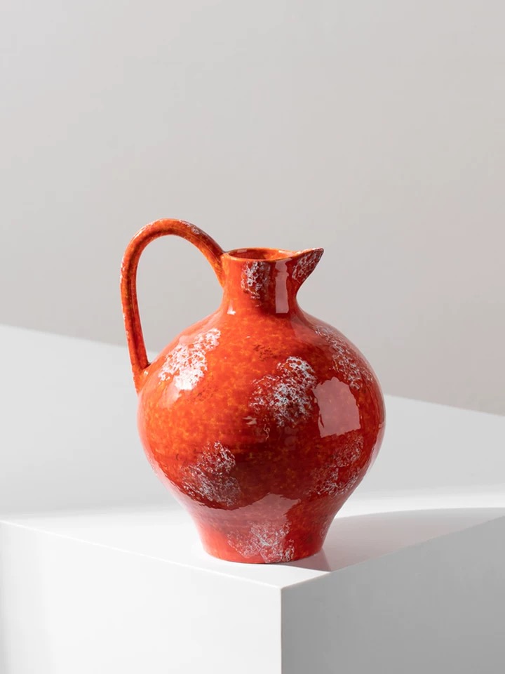 Цвет кувшина ярко-красный, словно солнечная струя, которая радостно озаряет помещение своим сиянием. Он наполняет пространство энергией и живостью, сразу привлекая взгляды.