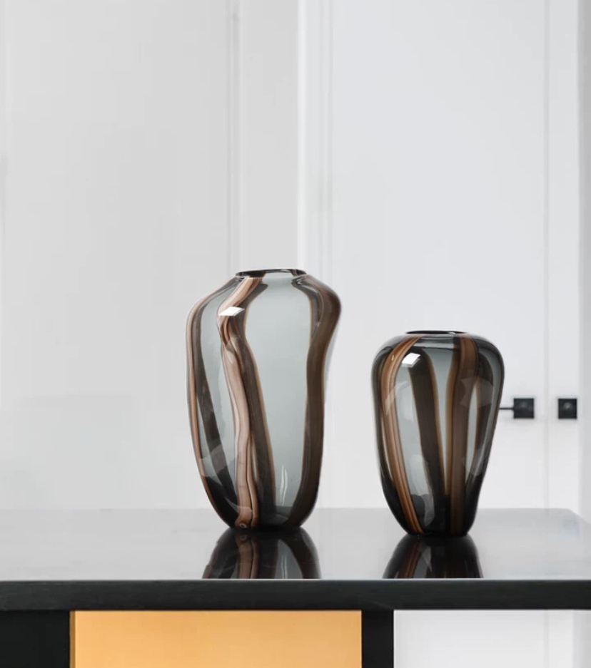 Но настоящее волшебство этих ваз сводится к нежным переливам рисунка самого стекла. Они играют на свету, создавая невероятно красивые оттенки и отражения. Каждый раз, когда взгляд падает на эти вазы, они раскрываются новыми нюансами, словно приглашая зрителя взглянуть на них снова и снова.