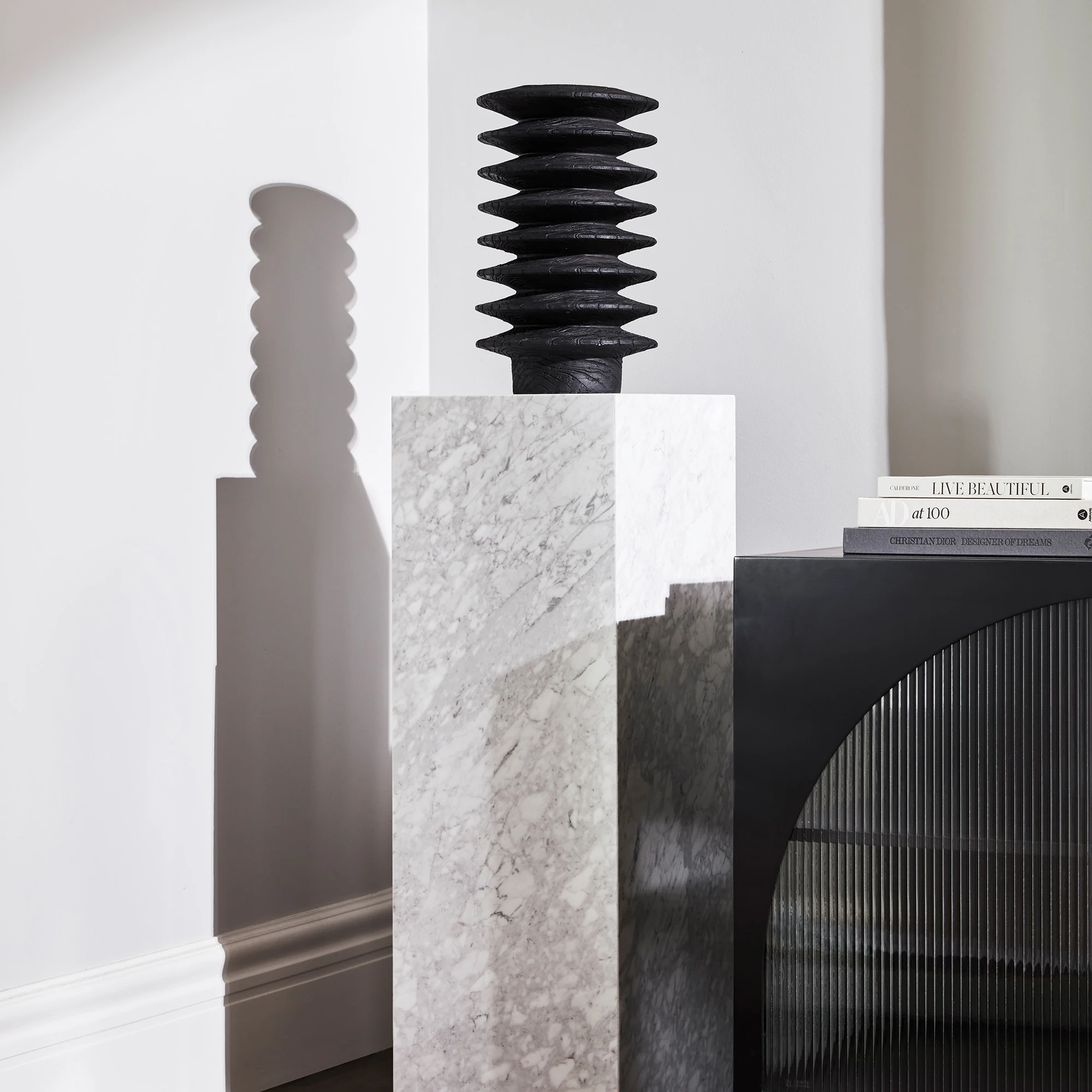 Довольно монохромная скульптурная ваза, созданная, чтобы поднять настроение ее владельцу и добавить дозу фешенебельности современному интерьеру.