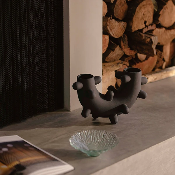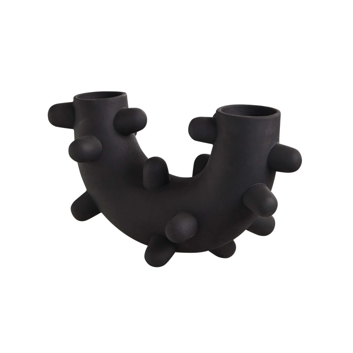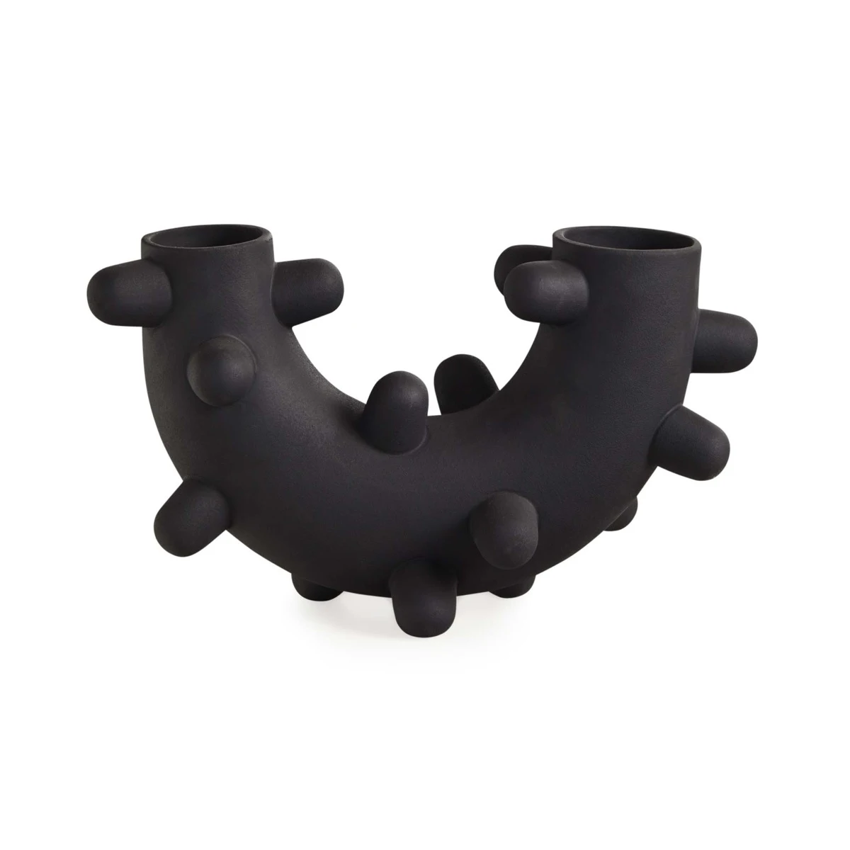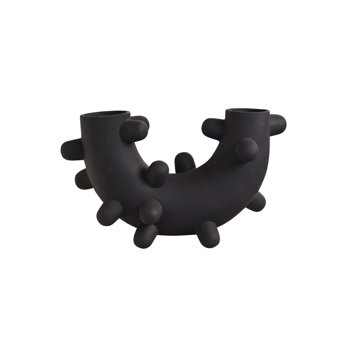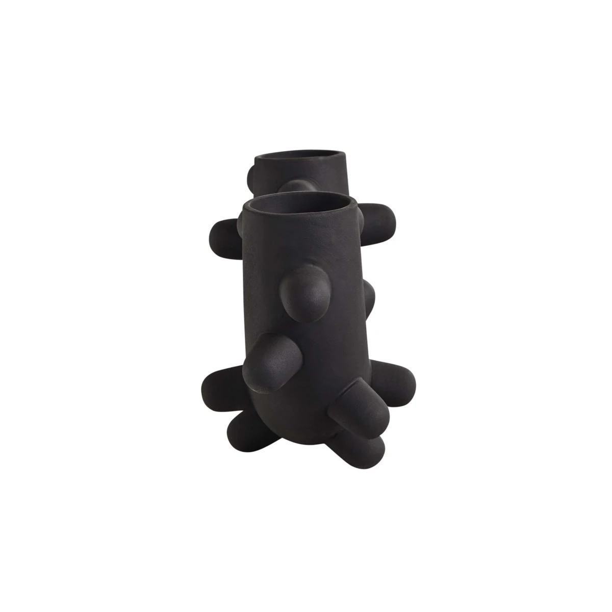 Завораживающая и впечатляющая ваза, выполненная в форме изогнутого цилиндра, хаотично украшенного небольшими сферами,