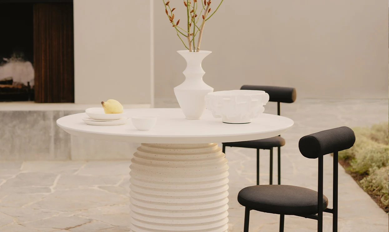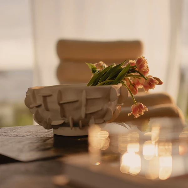 Чрезвычайно нетривиальный текстурный дизайн, который напоминает традиционную вазу в форме урны, при этом украшенную изогнутыми деталями уникальной формы.