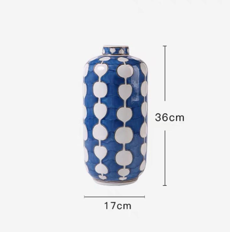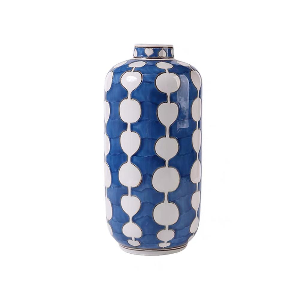 Белый цвет узоров придает вазе нотку нежности и элегантности, подчеркивая её изысканность и утонченность. Сочетание яркого голубого и чистого белого создает визуально привлекательный эффект, который будет гармонично сочетаться с различными стилями интерьера – от современного минимализма до классического или скандинавского.