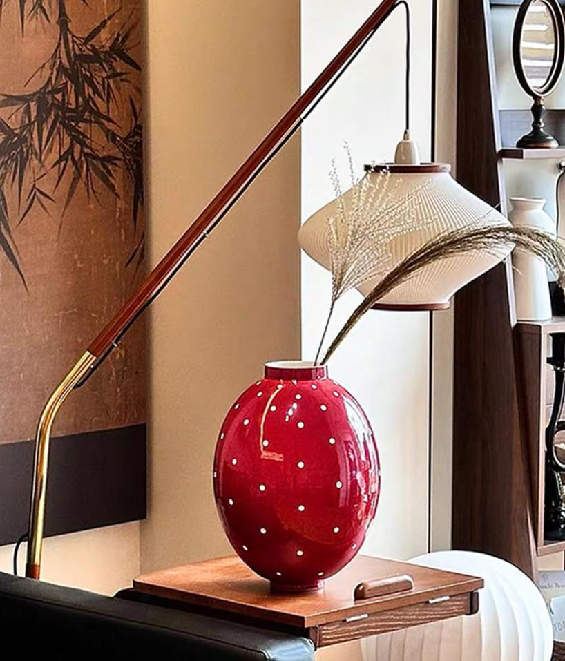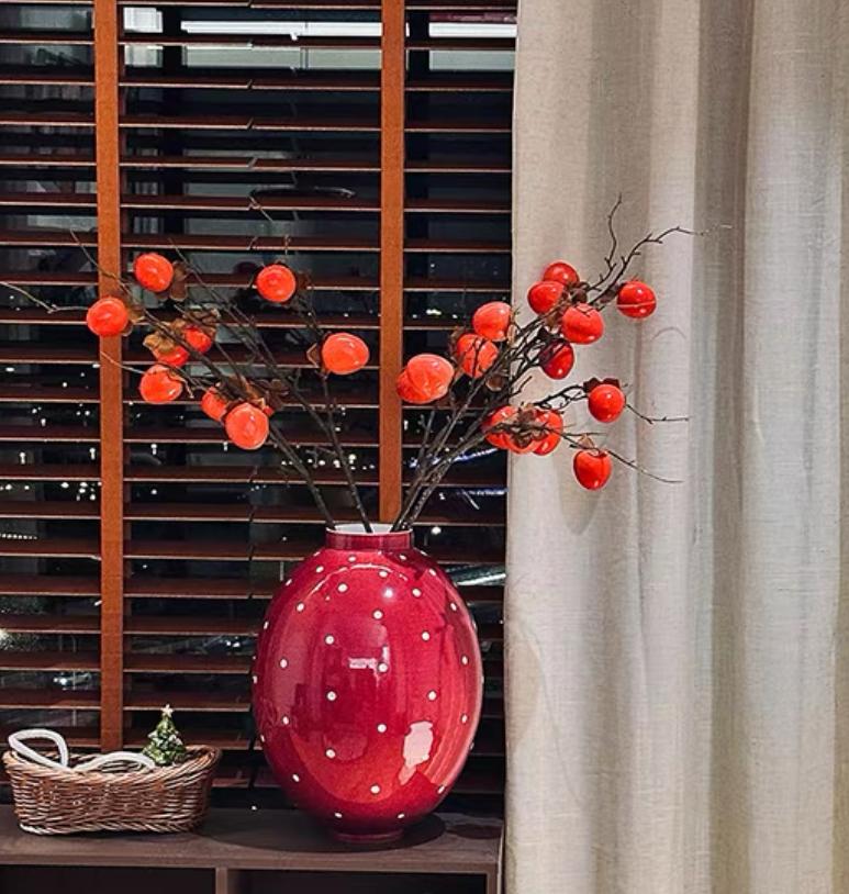 Основной цвет вазы – глубокий, насыщенный красный. Этот цвет – символ страсти, энергии и жизни. Он привлекает внимание, согревает душу и наполняет пространство позитивом. Красный цвет служит идеальным фоном для главного декоративного элемента – белого горошка.