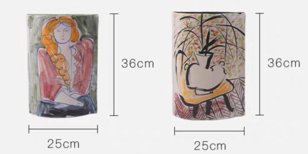 Позвольте мне описать эту необыкновенную дизайнерскую вазу, созданную руками талантливого мастера. Изготовленная из высококачественной керамики, она с первого взгляда приковывает внимание своей уникальной формой. Отходя от традиционных представлений о вазе, она предстает перед нами плоской, словно холст, на котором разворачивается целая история.
