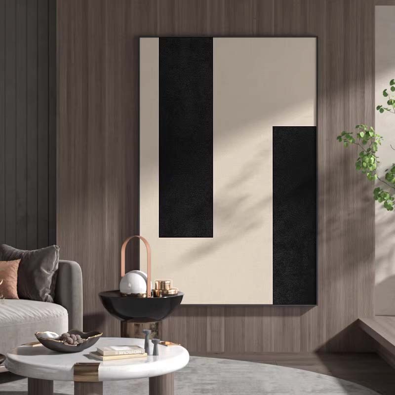 Картина в раме Usual состоит из двух прямоугольников разного размера. Фон картины выполнен в бежевом цвете, что создает контрастный эффект и придает работе чистоту и яркость. Это абстрактное изображение может трактоваться по-разному в зависимости от восприятия зрителя. Оно может вызвать ассоциации с геометрическими формами, ландшафтами или воспоминаниями в зависимости от индивидуального восприятия каждого зрителя.