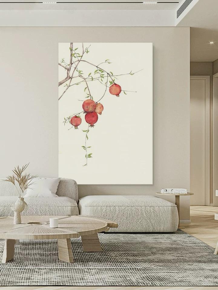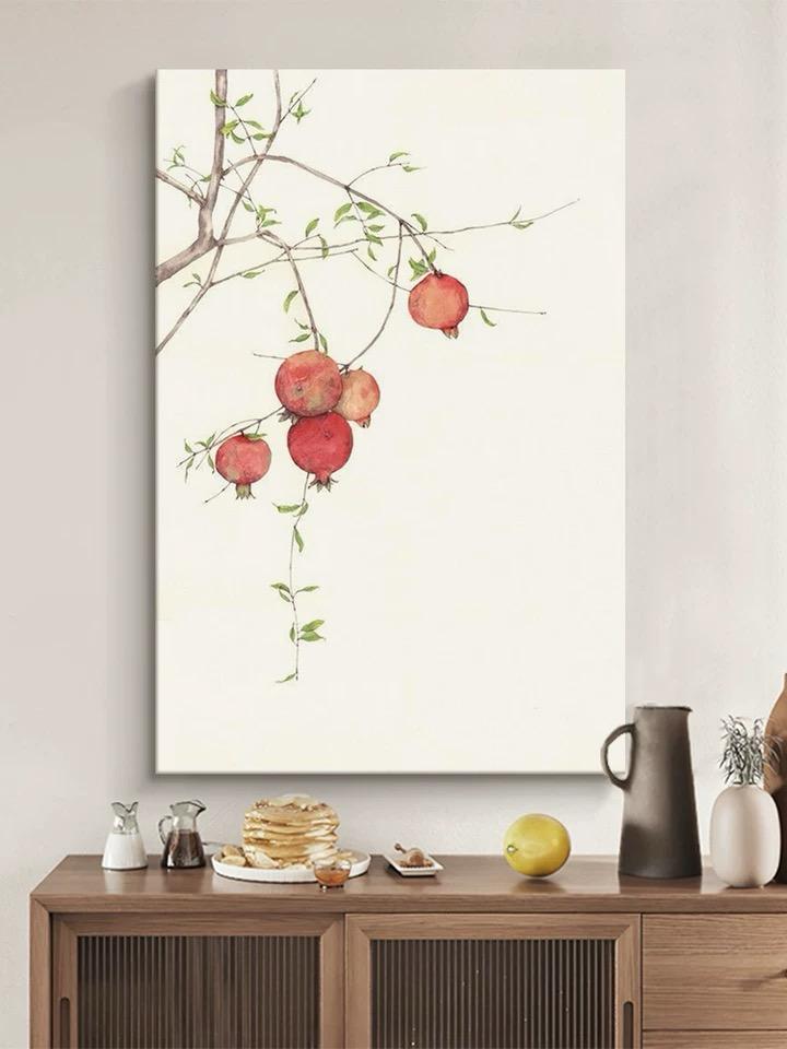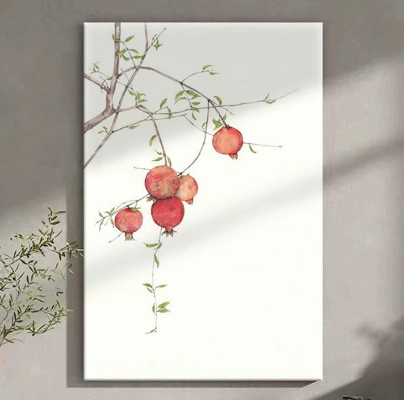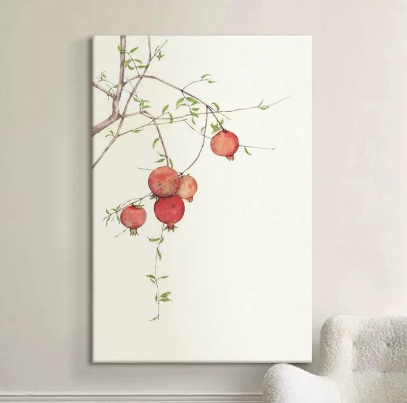 Картина Pomegranate — на белом фоне прямоугольной формы расположена картина, создающая образ исключительной красоты и нежности. Главным акцентом на картине является веточка гранатового дерева, которая притягивает взгляд своей естественной привлекательностью. Веточка великолепно выделяется своей сочной расцветкой и изысканными деталями.