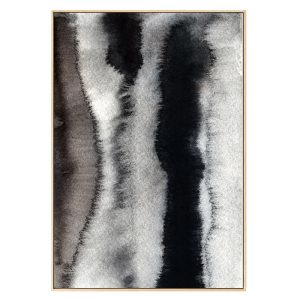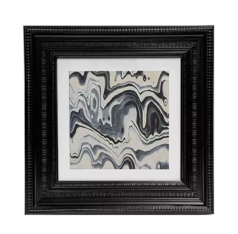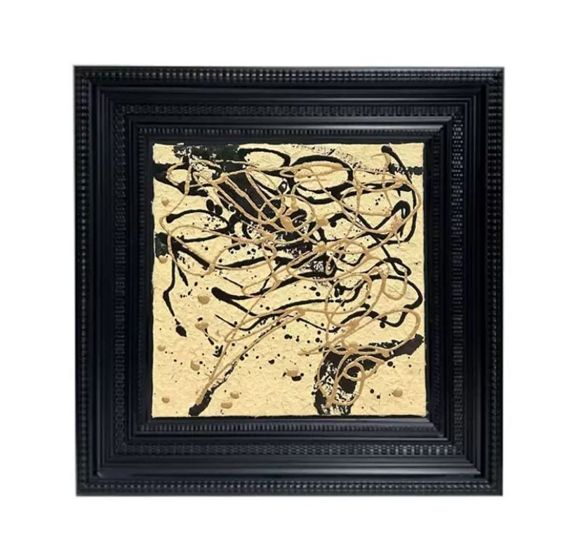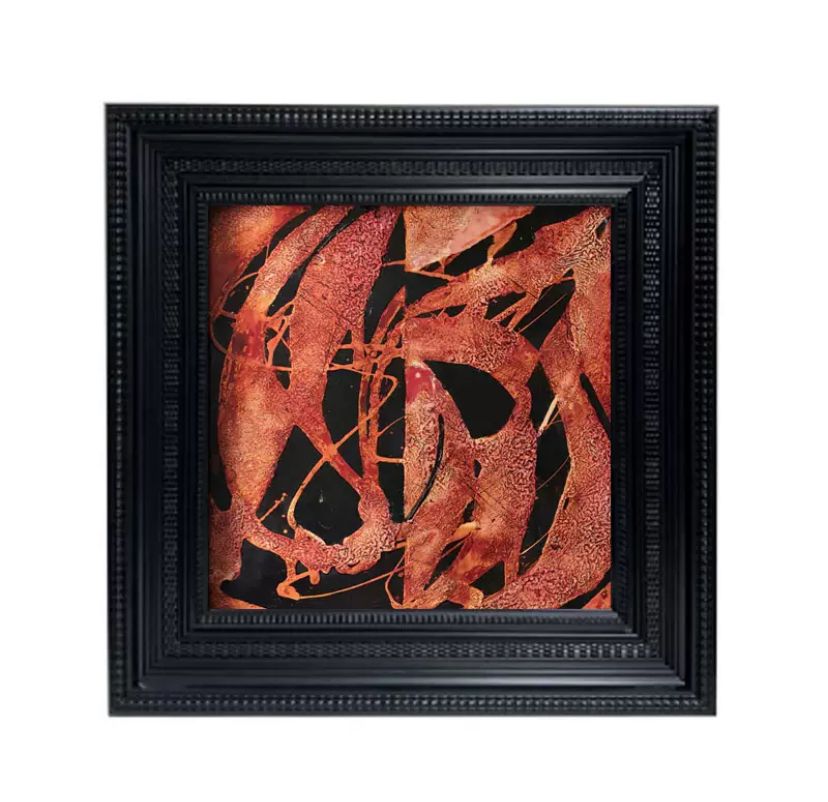 Начнем с рамы, представляющей собой значительный элемент этой работы. Ее ширина придает картине значительную визуальную тяжесть и создает классическое обрамление для абстрактного искусства, словно приглашая зрителя углубиться в изображение, спрятанное внутри. Ее интенсивный черный цвет делает ее как бы вратами в иной мир, в мир, который создает активно смелое противостояние с содержимым картины.