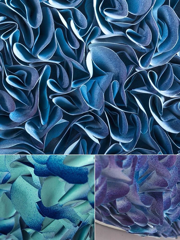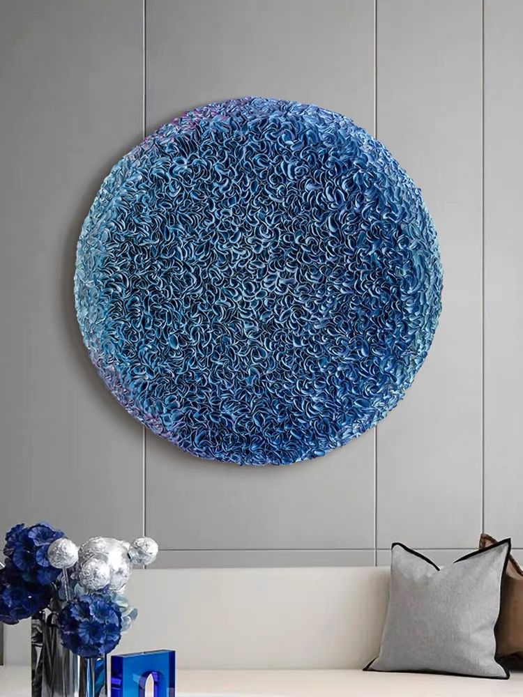 Настенный декор Unity от Hpdecor круглой формы? выполнен из многослойности материала. Он имеет глубокий рельеф и интересную текстуру, создавая ощущение объемности и глубины. Множество складок и изгибов творение художника и 100% кропотливая ручная работа. Цвет это особый разговор! невозможно описать точный цвет шедевра, так как здесь и бирюза, и небесно -голубой, синий, моментами оттенок моря и травы… вкупе эта картина настолько интересна для зрителя, что очень трудно отвести от нее восторженный взгляд