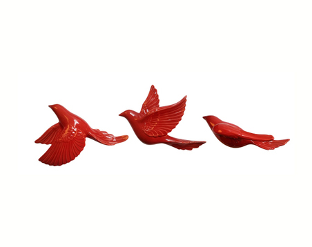 Настенный декор в виде трех птиц. Выполнен из керамики.