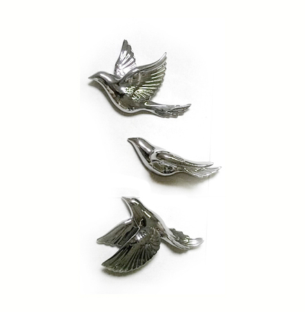 Настенный декор в виде трех птиц. Выполнен из керамики.