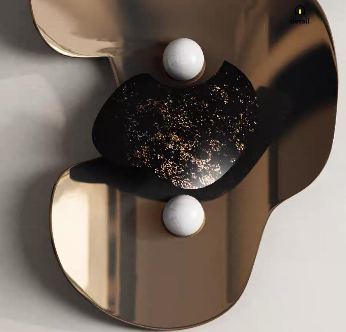 В центре бронзовой композиции – черная сердцевина, контрастирующая с остальной частью декора. Черный цвет добавляет глубину и драматичность, притягивая взгляд и создавая фокусную точку.