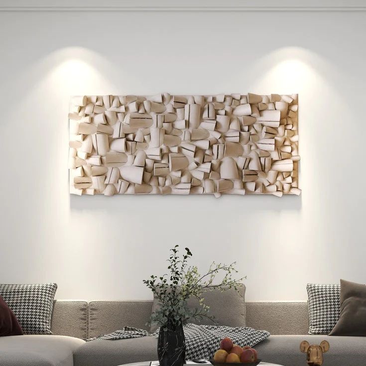 Каждая форма имеет свою уникальную структуру и глубину, расположение форм в хаотическом порядке, создает игру света и теней на поверхности декора. Этот настенный декор станет прекрасным акцентом в Вашем интерьере, добавляя ему художественного шарма и оригинальности. Идеальное решение для интерьеров в стиле модерн и минимализм.