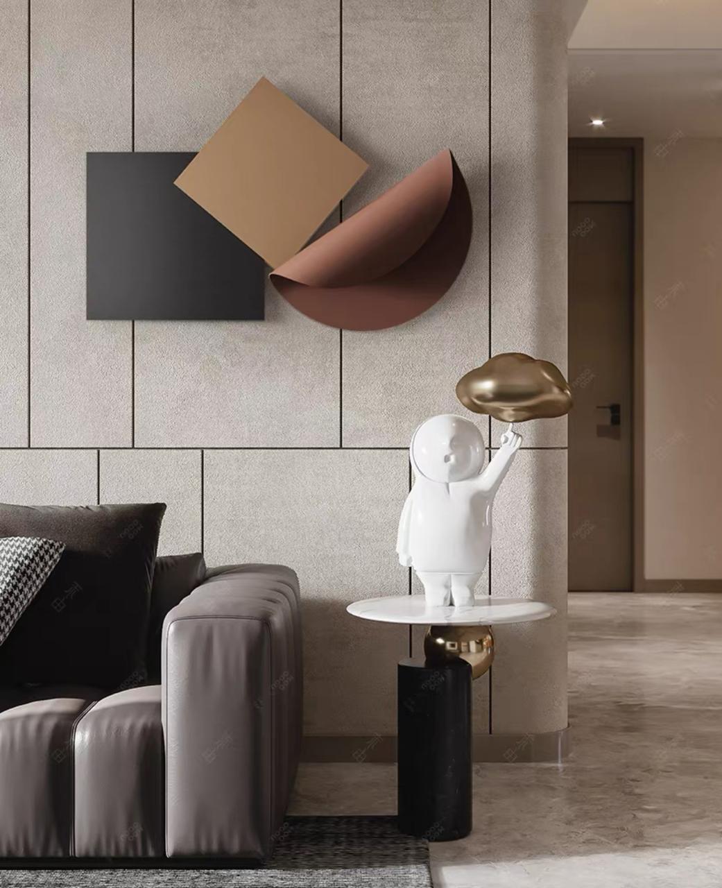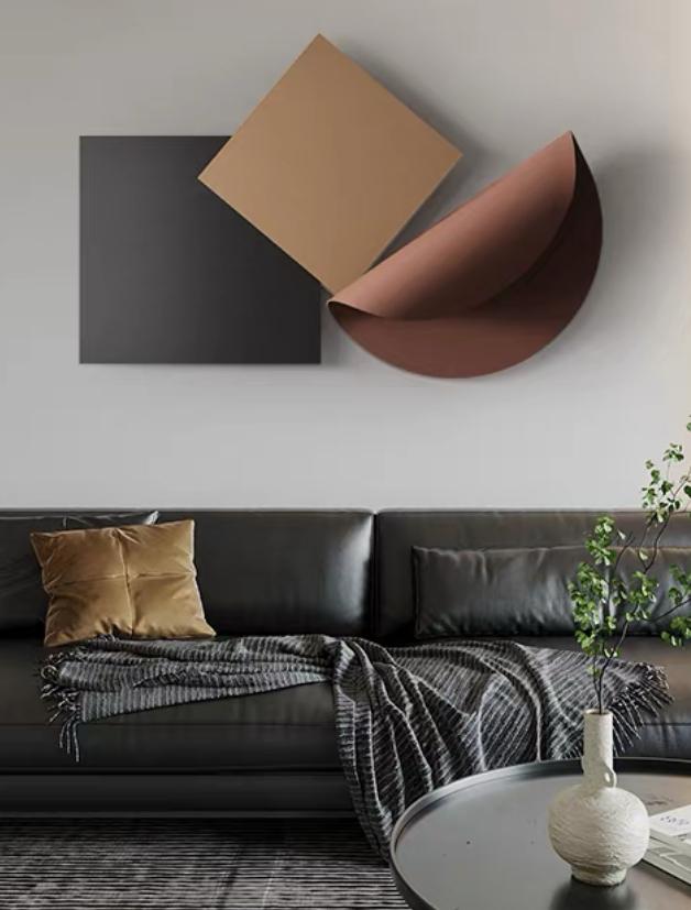 На стене –Minimalлистичный акцент с характером: настенный декор, созданный вручную. Два диска из тонкого металла, кажущиеся невесомыми, формируют единую композицию. Каждый диск выкрашен матовой краской, что придает им благородную сдержанность и позволяет раскрыть всю прелесть формы.