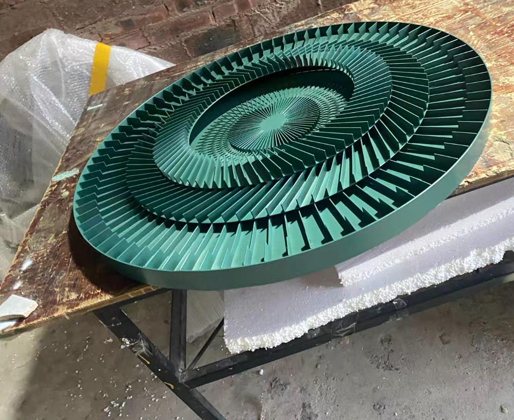 Вместе эти пластинки образуют нечто поистине космическое. Они напоминают вид на звездное скопление издалека, орбиты планет, танцующих вокруг солнца, или даже слои геологических пород, скрывающих тайны далеких эпох. Свет, играющий на поверхности пластинок, создает ощущение движения и глубины, будто декор живет своей собственной, загадочной жизнью.