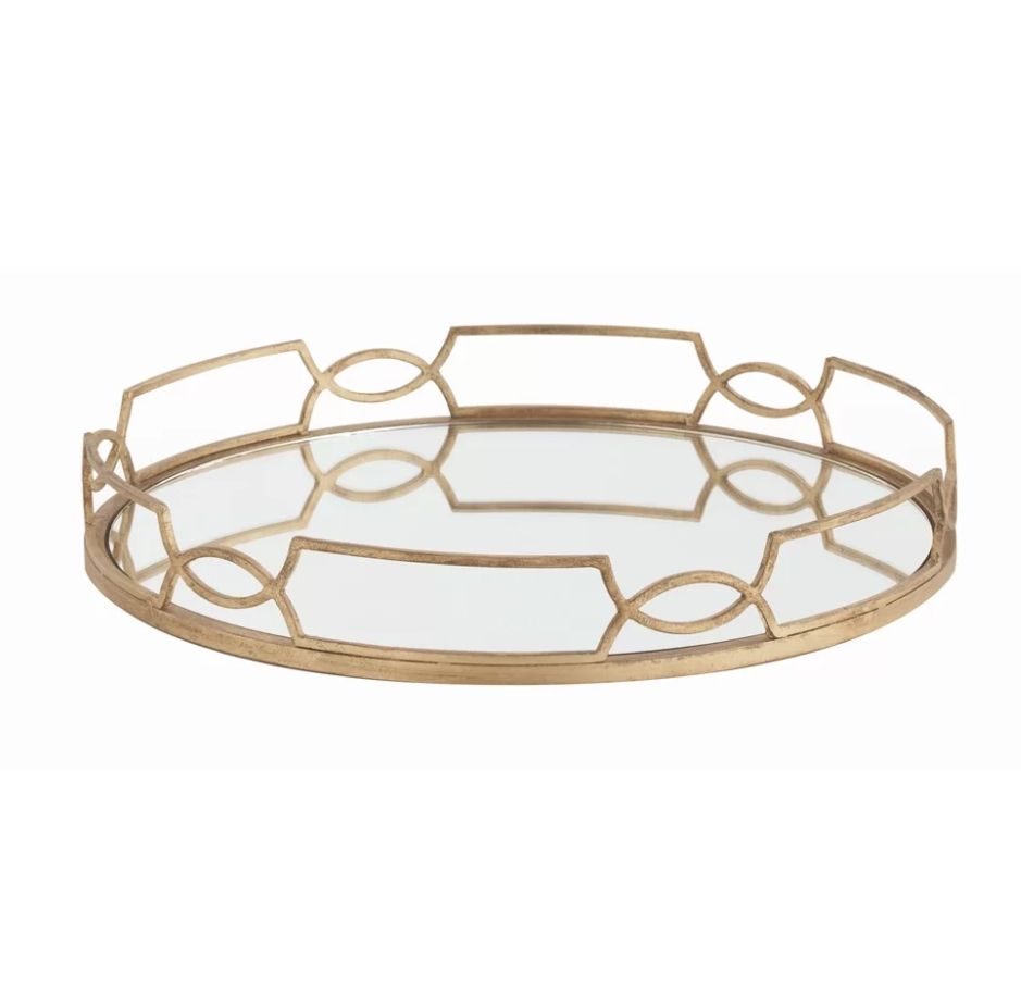 Шикарный поднос в стиле Барокко. Выполнен в золотом обрамлении. Удачно впишется как на вашем туалетном столике, так и на кофейном. Подарит вашему интерьеру капельку шика.