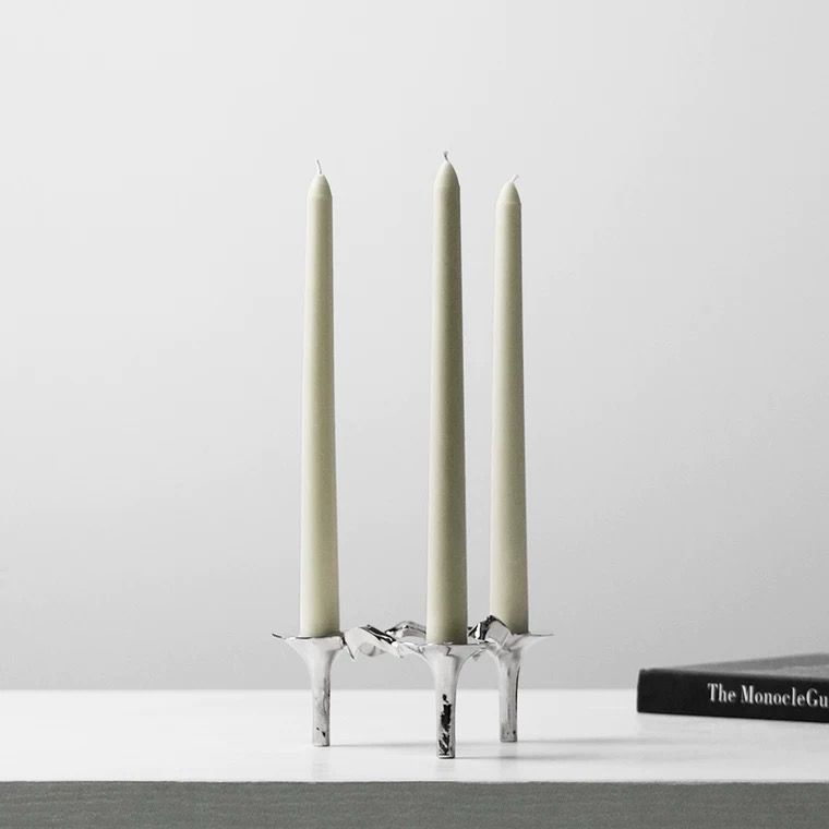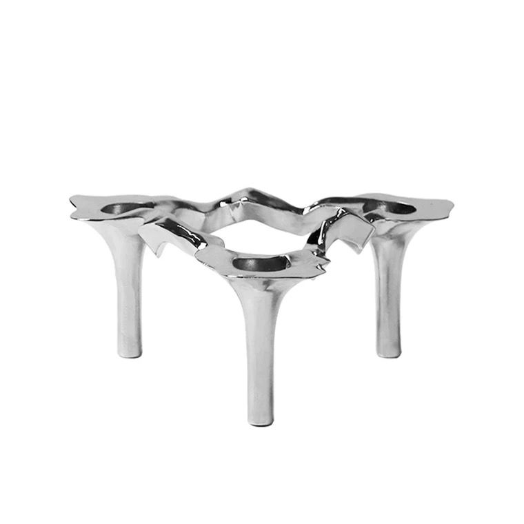 Подсвечник Trios — абстрактной формы, созданный вручную из металла, представляет собой уникальное произведение искусства. Его изящная и элегантная конструкция придает интересный акцент любому интерьеру.