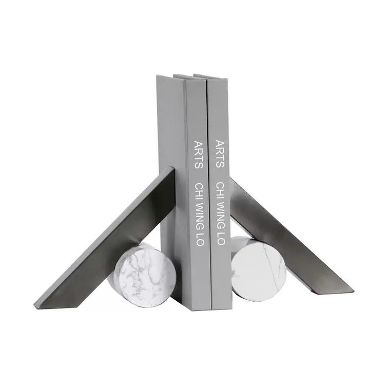 Такая абстрактная подставка для книг идеально подходит для использования в современных интерьерах, а также является прекрасным аксессуаром для оформления книжных полок или стола. Комбинация мрамора и стали создает привлекательный контраст и придает подставке изысканный внешний вид.