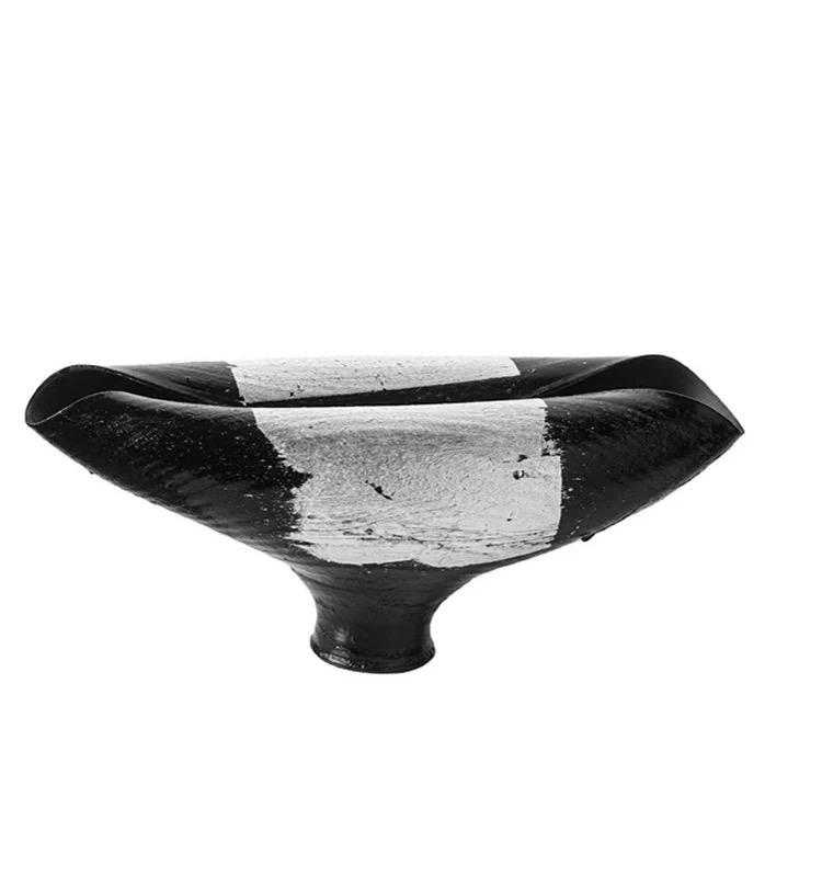 Абстрактный настольный предмет декора Antiq Potal, выполненный из черной смолы, представляет собой низкую стильную вазу с изогнутыми краями, в Африканском стиле. Её форма напоминает витое стекло или плавное движение волн. Ваза обладает элегантными и изящными линиями, которые придают ей гармоничный и привлекательный вид.