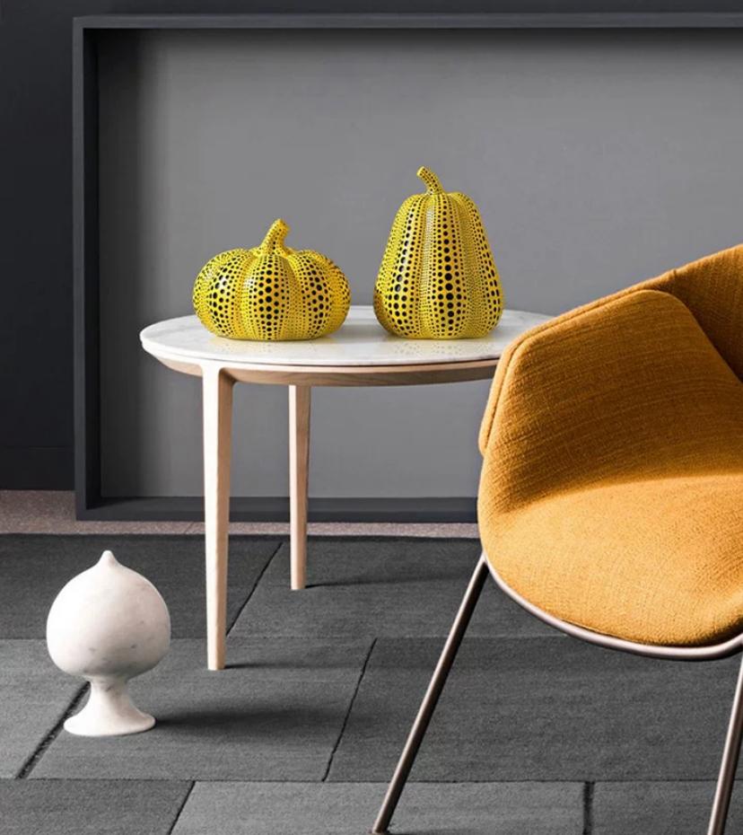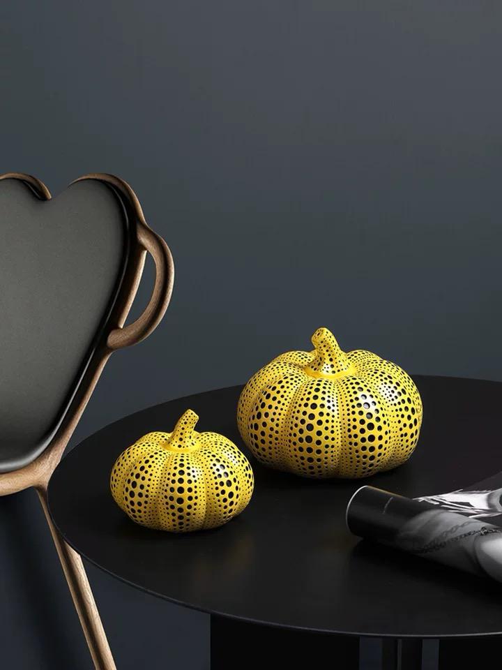 Настольный Предмет декора Zucca — Описывая настольный декор в форме тыквы, можно увидеть его ярко-желтый цвет, который мгновенно привлекает внимание своей яркостью и насыщенностью. Как будто было захвачено самое яркое солнечное сияние и превращено в материю.