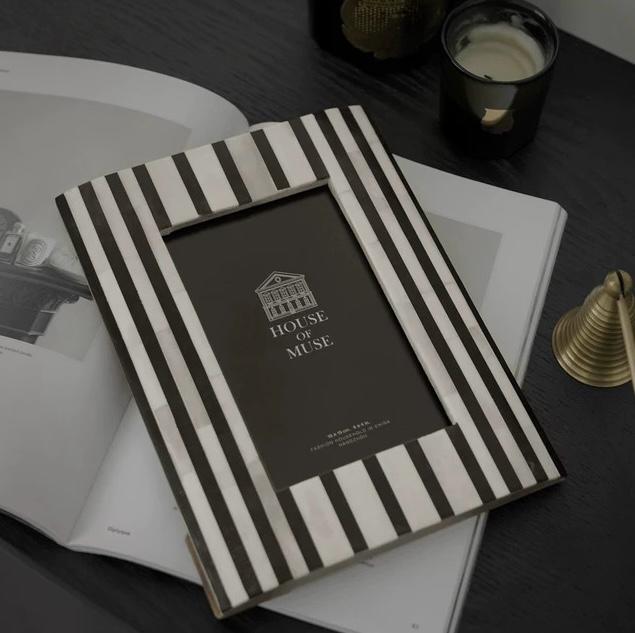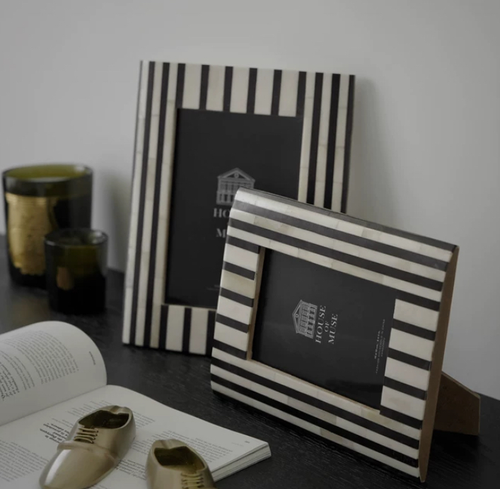 На светлом фоне фоторамок расположены тонкие темные вертикальные полосочки, которые придают им особый шарм и подчеркивают винтажный характер. Этот необычный элемент декора добавляет оригинальности и привлекательности к фоторамкам в ретро стиле.