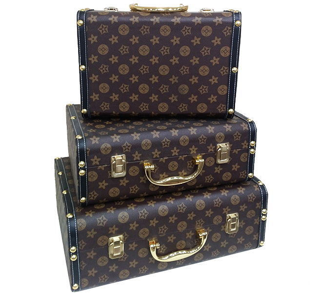 Винтажный чемодан LV, выполненный в стиле знаменитого дома моды позволит стильно и ярко организовать порядок. Подарит вашему интерьеру нотки богемности и шика, а также неотразимого винтажного шарма! Смело используйте эти чемоданы под кофейные столики или прикроватные тумбы. Храните в нем все: начиная от косметики и украшений, заканчивая канцелярией и важными документами. Впрочем, решать вам!