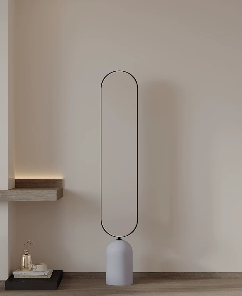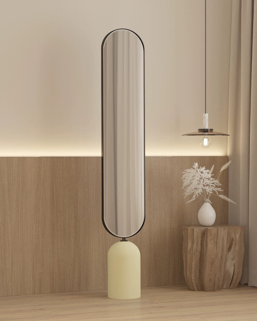 Под зеркалом располагается устойчивая светлая основа, которая не только служит надежной поддержкой, но и дополняет общий образ предмета. Эта светлая база создает контраст с металлической рамой, благодаря которому зеркало выглядит еще более выразительным. Основа тщательно продумана и выполнена таким образом, чтобы обеспечивать максимальную устойчивость, даже при многократных поворотах зеркала.