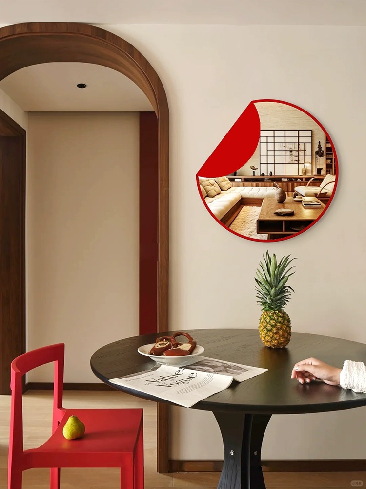 Перед вами не просто зеркало, а воплощение креативности и утонченной элегантности. Его глаза мгновенно привлекает смелая красная металлическая рама, исполнение которой вызывает восхищение и трепет. Красный цвет – символ страсти, энергии и силы, превращает зеркало в центральный акцент любого помещения. Этот оттенок олицетворяет вызов и смелость, при этом он гармонично вписывается в обстановку, где традиционные нормы уступают место авангардному мышлению и эстетике.